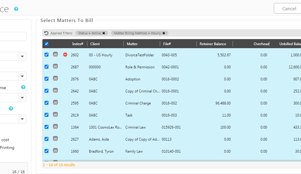 - Legal Billing: Batch generate all invoices with one click of the mouse.