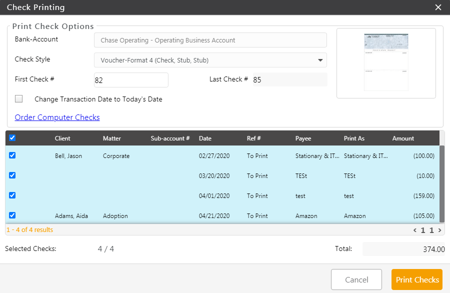 - Bank/Credit Card Transaction Imports: Import electronic bank/credit card statements for automated data entry. Built-in, adaptive mapping rules can correct payee names and learn a chart of account(s). You can even post matter-cost related transactions while importing to prevent missed expense entries.